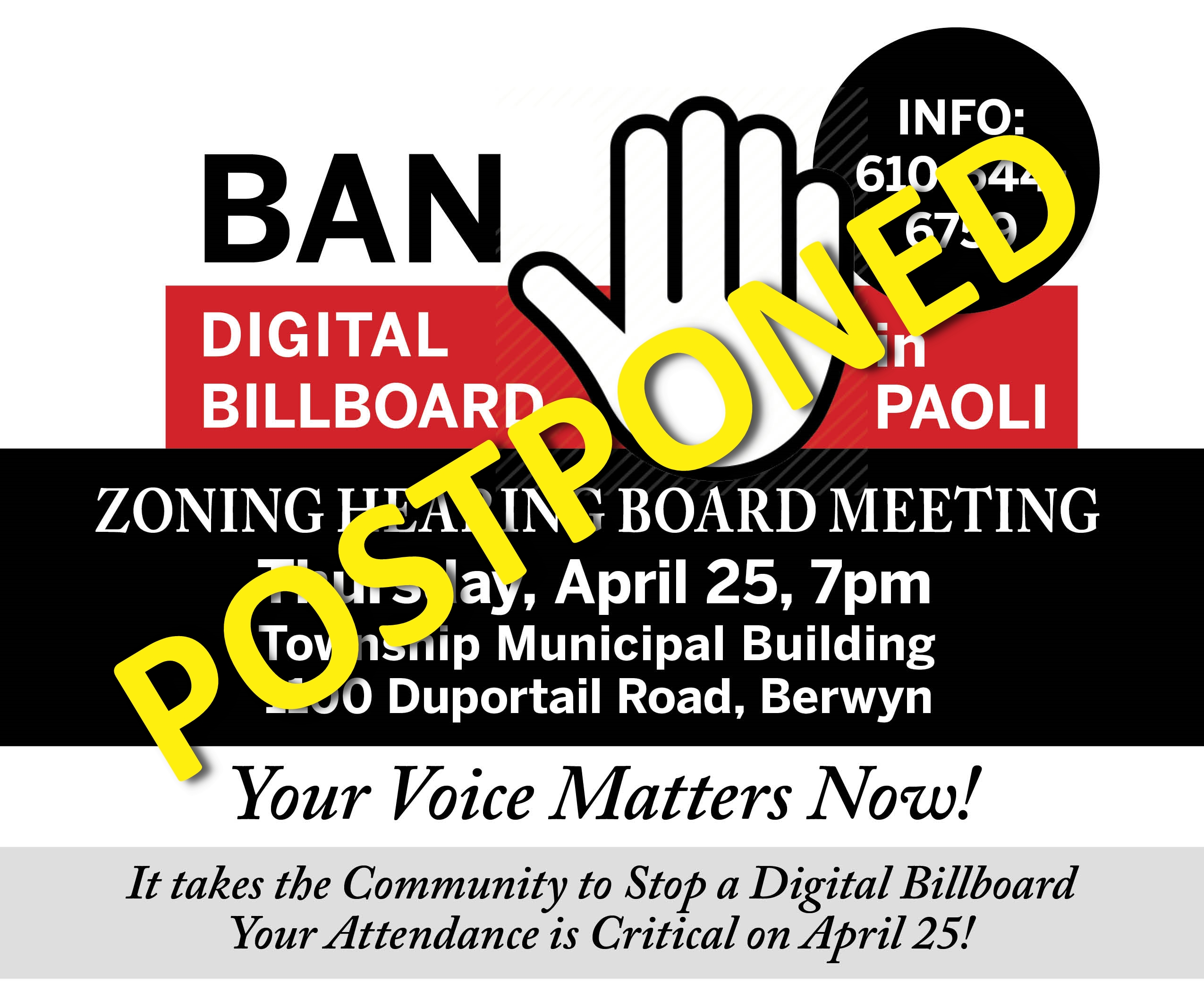 And just when I thought that the “Ban the Digital Billboard” signs were safe, I have learned that two were stolen from a resident’s lawn over the weekend – this was the third set of signs stolen from this specific property, just steps from her front door on Old Eagle School Road.